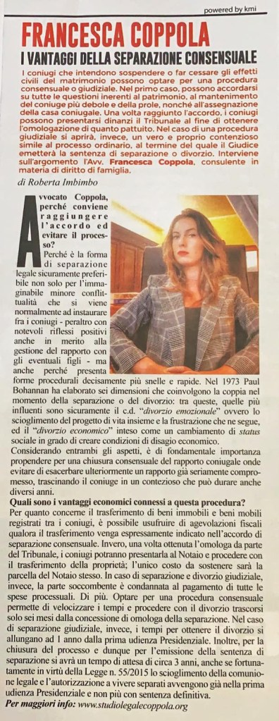 L’Avv. Francesca Coppola tratta il diritto di famiglia con la massima serietà e professionalità in virtù del bene ultimo che si tende garantire: la stabilità ed il benessere psicologico di coloro che affrontano una separazione o un divorzio.